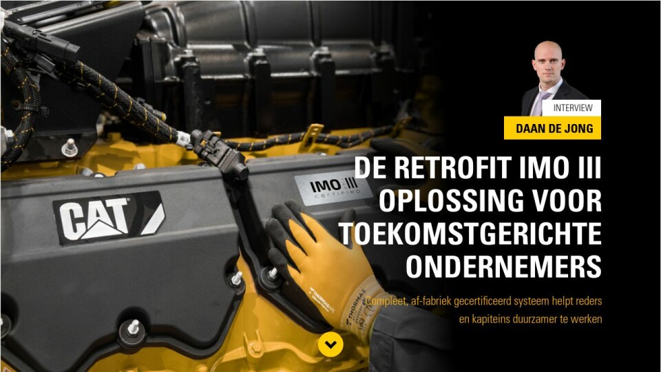 Dat nieuw gebouwde schepen met kiellegging vanaf 1 januari 2021 moeten voldoen aan de nieuwe, strengere IMO III emissie-eisen is algemeen bekend. Maar voor kapiteins en reders die hun duurzaamheidsdoelstellingen willen waarmaken door hun bestaande Cat motoren ook IMO III-gecertificeerd te maken, heeft Caterpillar een complete en gecertificeerde retrofit-oplossing. We vroegen Daan de Jong, Manager Sales Marine bij Pon Power, naar de ins en outs van deze vooruitstrevende oplossing.