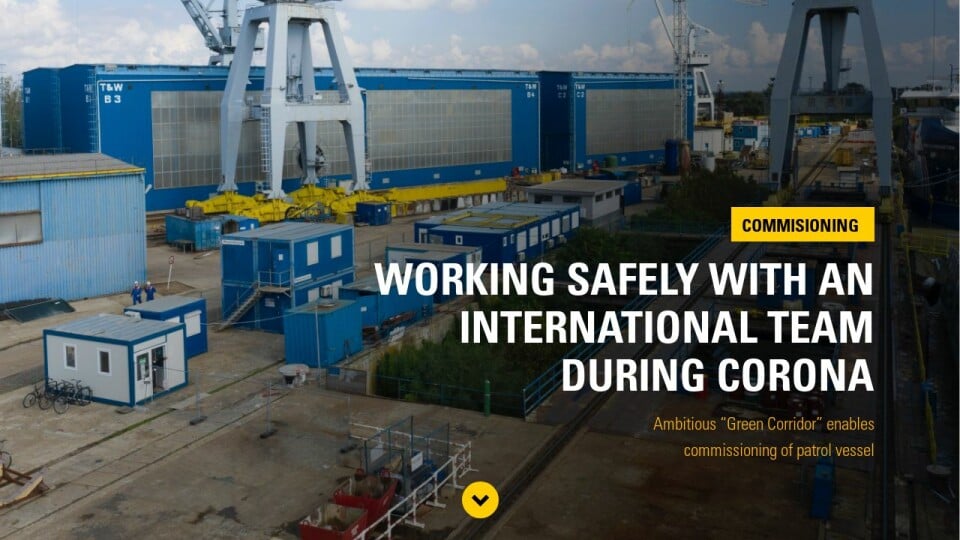 As a project manager at shipbuilder Damen Shipyards Group, Moed is not easily impressed by an unexpected situation. But what happened in March 2020, also demanded the utmost of his ability to resolve. He says: “At our yard in Galati, Romania, we had built two patrol vessels for a government client. The first was completed in February, the second was to follow a little later. But then the corona crisis broke out and with that the commissioning of that vessel also entered a kind of lockdown.”